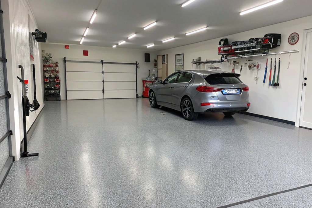 This is your straightforward, no-fuss option. Pick a colour - grey, tan, or blue are popular - and get a uniform finish across your entire garage floor. Solid-colour epoxy works well if you want a clean, professional look with minimal visual interest. The coating still gives you all the durability and chemical resistance, just without decorative elements.